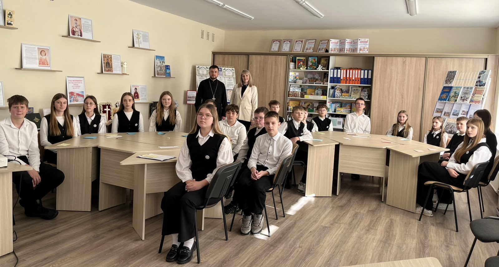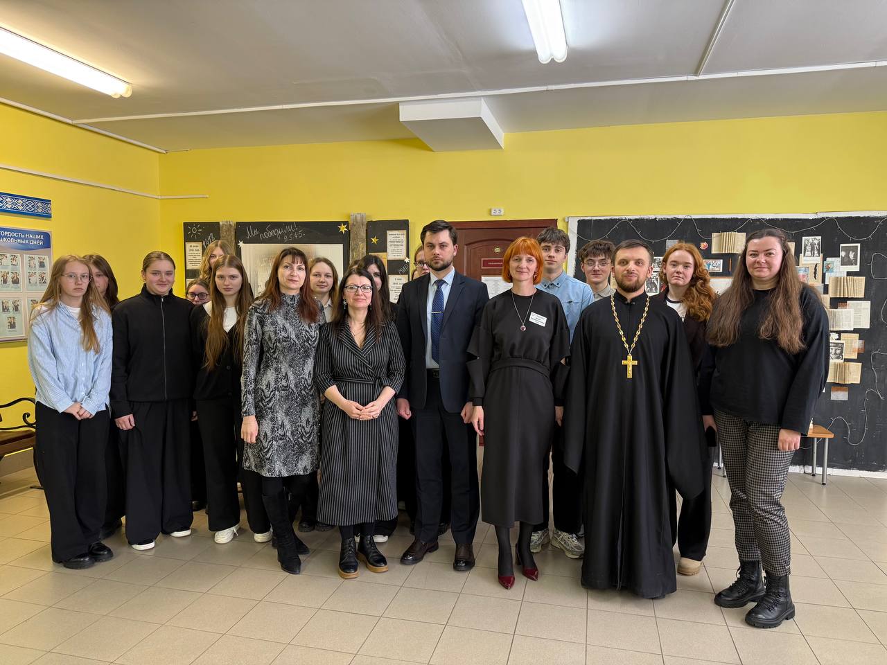 В мероприятии приняли участие учащиеся 1-х, 5-х и 8-х классов, а также настоятель храма Собора новомучеников и исповедников земли Белорусской протоиерей Кирилл Близнюк.