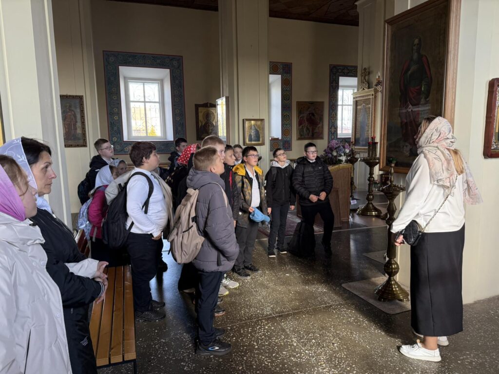 Преподаватель воскресной школы матушка Ника Гладун, провела для детей экскурсию по храму, рассказала о его истории, устройстве и убранстве. Рассказала о священнослужителях которые в нем служили, показала старинные книги, по которым молилось не одно поколение.