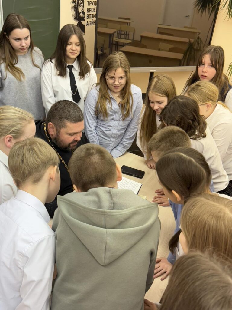 Во время урока, настоятель Крестовоздвиженской церкви