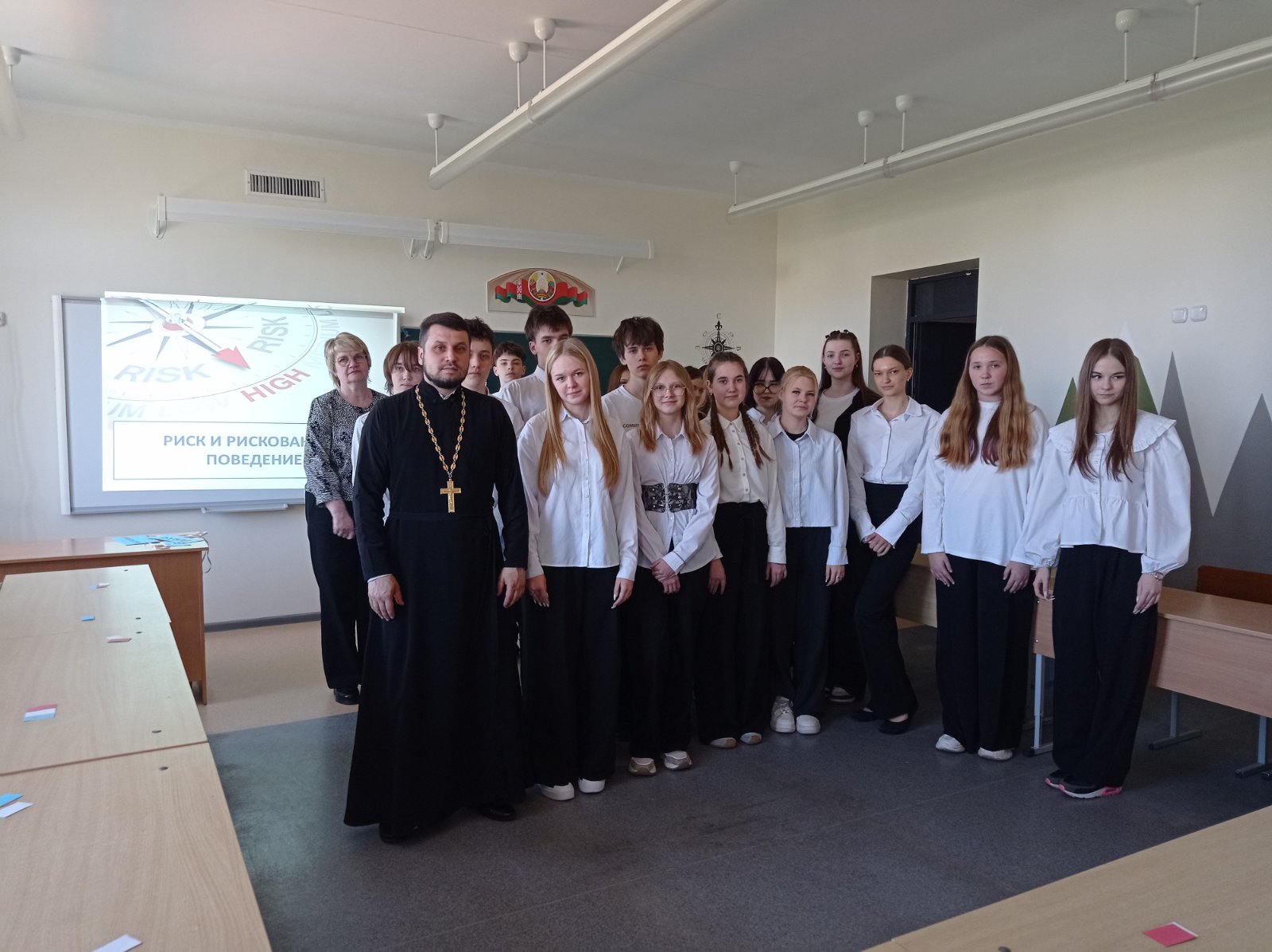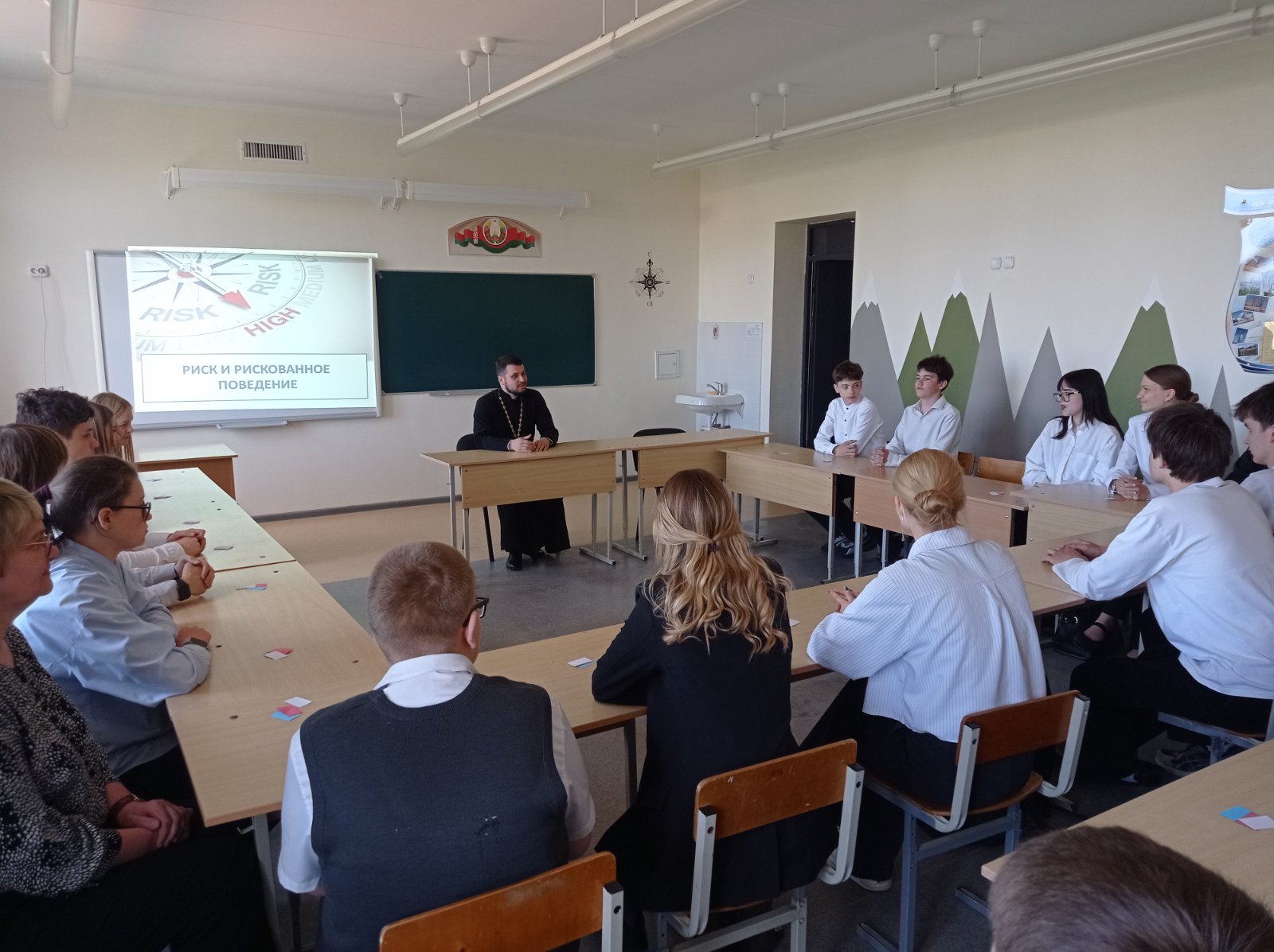 На урок был приглашен клирик прихода храма Собора новомучеников и исповедников земли Белорусской г. Скиделя иерей Александр Дежурко.